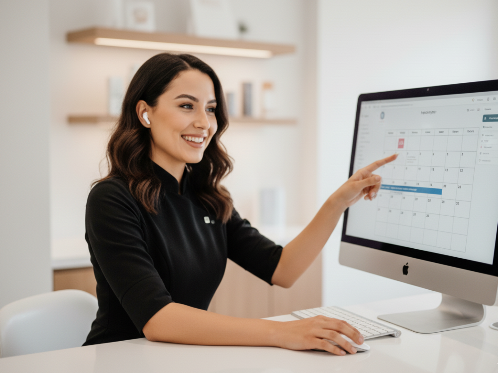 Meet Valentina — warm, approachable, and fluent. Your Multilingual Scheduler who makes every client feel at home, no matter the language.